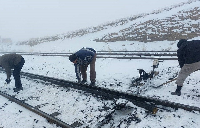 برفروبی سوزنهای ریل در محور فارس برای حفظ ایمنی تردد قطارها