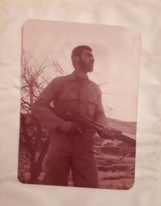 به صورت داوطلب و رزمنده بسیجی به جبهه اعزام شد. در هر بار اعزام، طولانی مدت در جبهه حضور داشت و تکه کلامش هم؛ جنگ جنگ تا پیروزی بود. در بازه سال ۶۱ تا ۶۳، وقتی که در منطقه جنگی حضور داشت از نقاط مختلفی برایم نامه میفرستاد، از کردستان تا شلمچه و مهران. در آخرین نامهای که ۱۶ تیر سال ۶۵ از تپههای قلاویزان فرستاده بود برایم اینطور نوشته بود؛ این جبهه پایانی من است و به زودی خدمت شما میرسم.