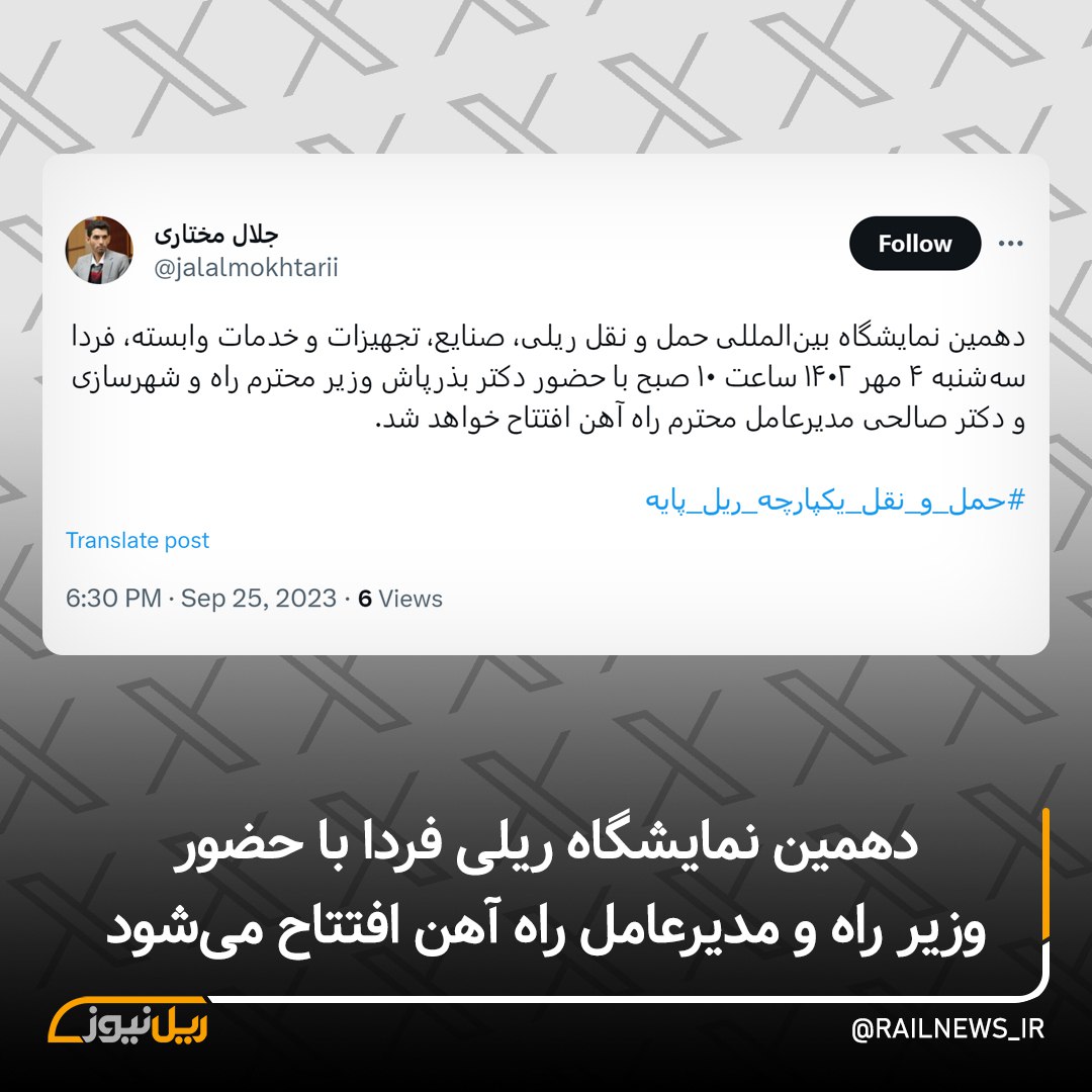 نمایشگاه صنعت ریلی فردا میزبان وزیر راه و شهرسازی خواهد بود