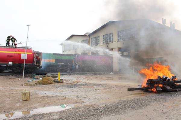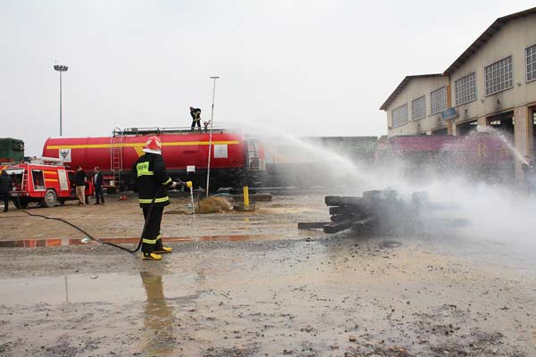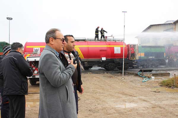 مانور عملیات اطفاء حریق در راهآهن قم برگزار شد