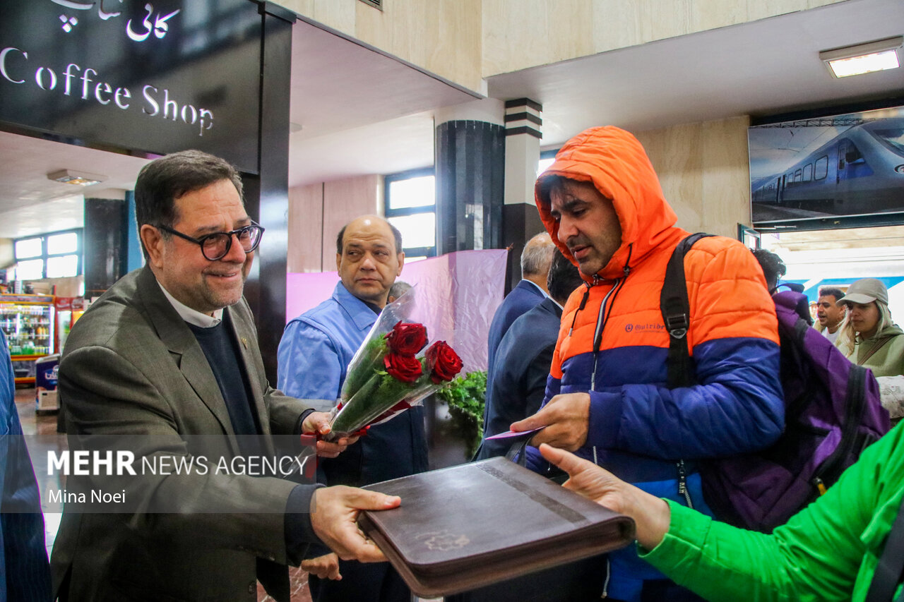 [تماشا کنید] مراسم استقبال از مسافران نوروزی در ایستگاه راهآهن تبریز