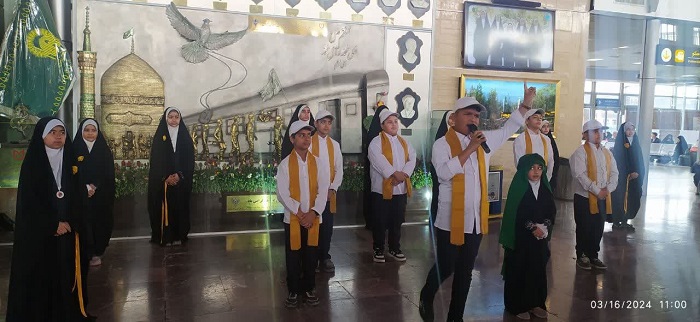به گزارش پایگاه خبری ریل نیوز، همزمان با فرارسیدن ایام پیک سیر قطارهای مسافری نوروزی، آئین مشایعت و استقبال از مسافرین و زائرین امام هشتم(ع) قطارهای اعزامی از مشهد با اجرای زنده گروه سرود ترنم ظهور، در سالن انتظار مسافران ایستگاه راهآهن مشهد در حال انجام است.