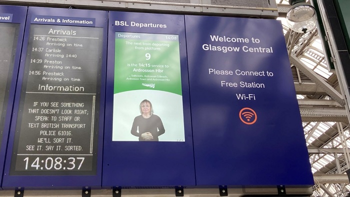 به نوشته ریلوی ساپلای، راه آهن اسکاتلند به عنوان نخستین راه آهن بریتانیا، به تازگی صفحات نمایش بزرگی در ایستکاه های راه آهن خود نصب کرده که حاوی ویدئوهای راهنمای ویژه ناشنوایان جهت بهبود تجربه این دسته از افراد در استفاده از خدمات ریلی است.