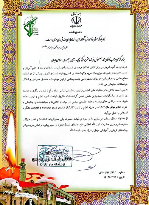 فرمانده بسیج راهآهن به عنوان مدیر موفق سال ۱۴۰۲ معرفی شد
