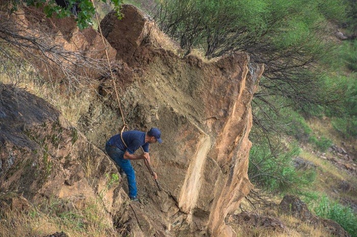 [تماشا کنید] ریختن سنگ های معلق برای سیر ایمن قطارها در راه آهن لرستان