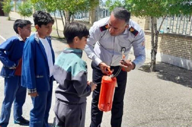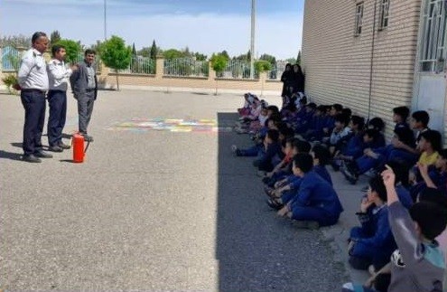 در بخش دیگری از این مانور، مامورین آتش نشانی با حضور در دبستان شهید کلانتری شهرک مسکونی راه آهن سیرجان، به تشریح انواع کپسول های آتش نشانی و نحوه استفاده آن ها با توجه به نوع آتش سوزی پرداختند و بصورت عملی دانش آموزان این دبستان به مهار آتش پرداختند.