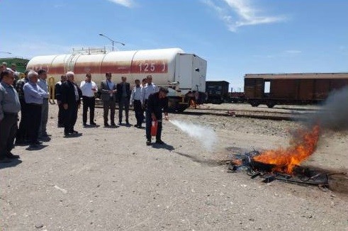 آموزش اطفاء حریق و مانور آتش نشانی در ایستگاه راه آهن سیرجان
