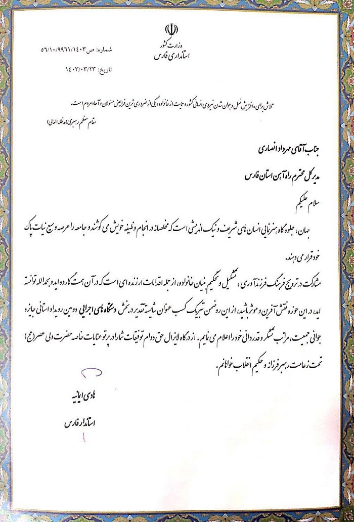 در دومین رویداد استانی جایزه جوانی جمعیت از مدیرکل راه آهن فارس تقدیر شد