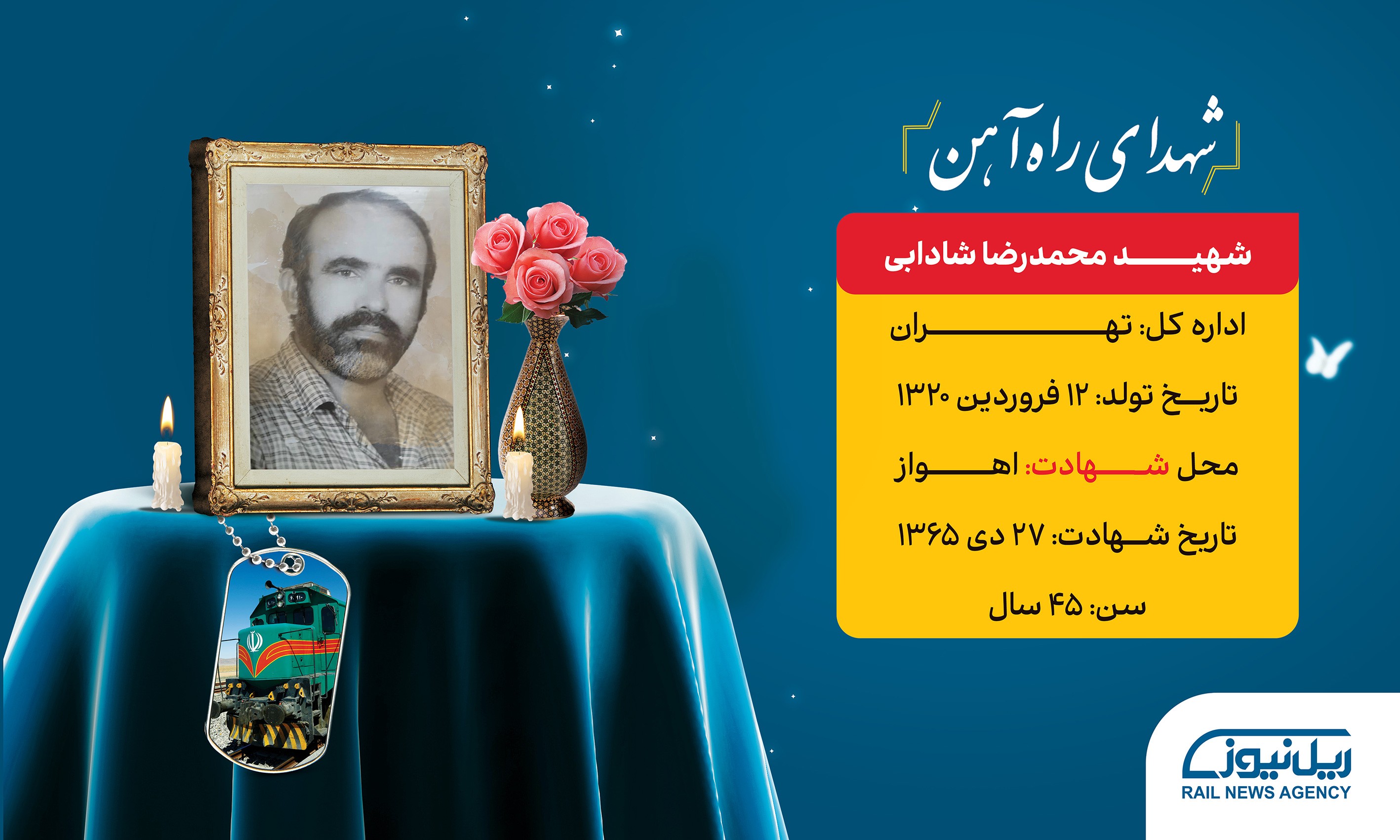 شهید «محمدرضا شادابی» از شهدای گرانقدر هشت سال دفاع مقدس و از کارکنان متعهد راهآهن بود. او که مسئولیت انتقال قطارهای حامل مهمات جنگی به جبههها را داشت بعد از رشادتهای فراوان سرانجام در حین انجام عملیات رساندن مهمات جنگی به رزمندگان در ایستگاه راهآهن اهواز به شهادت رسید.