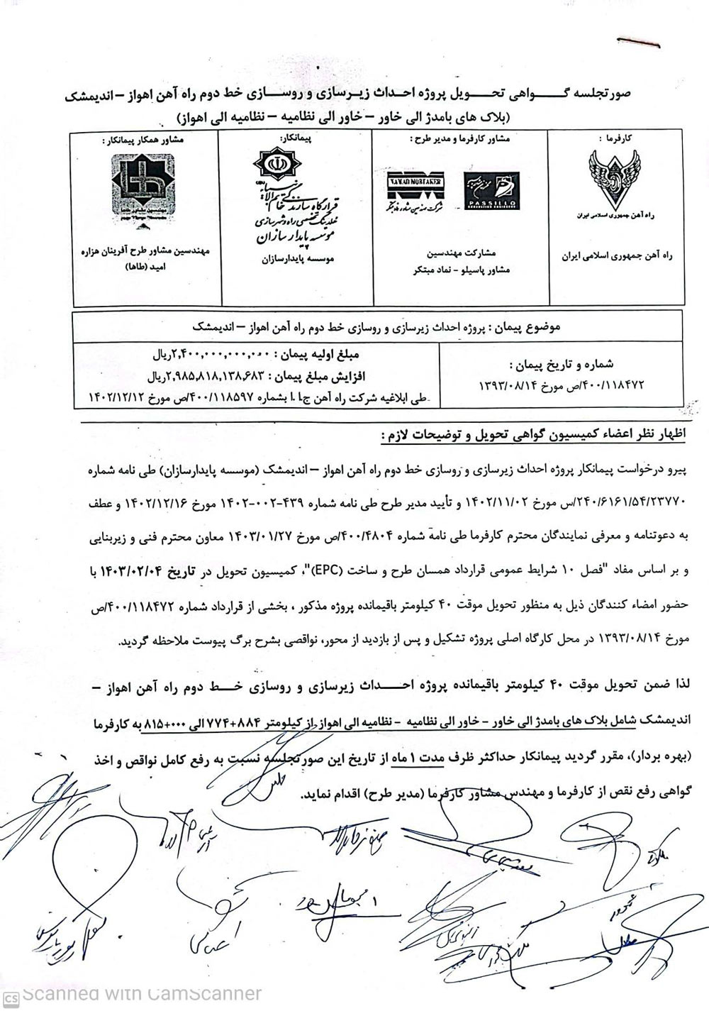 برای افتتاح دوخطه بامدژ – اهواز تمامی مراحل فنی و قانونی طی شده بود + سند