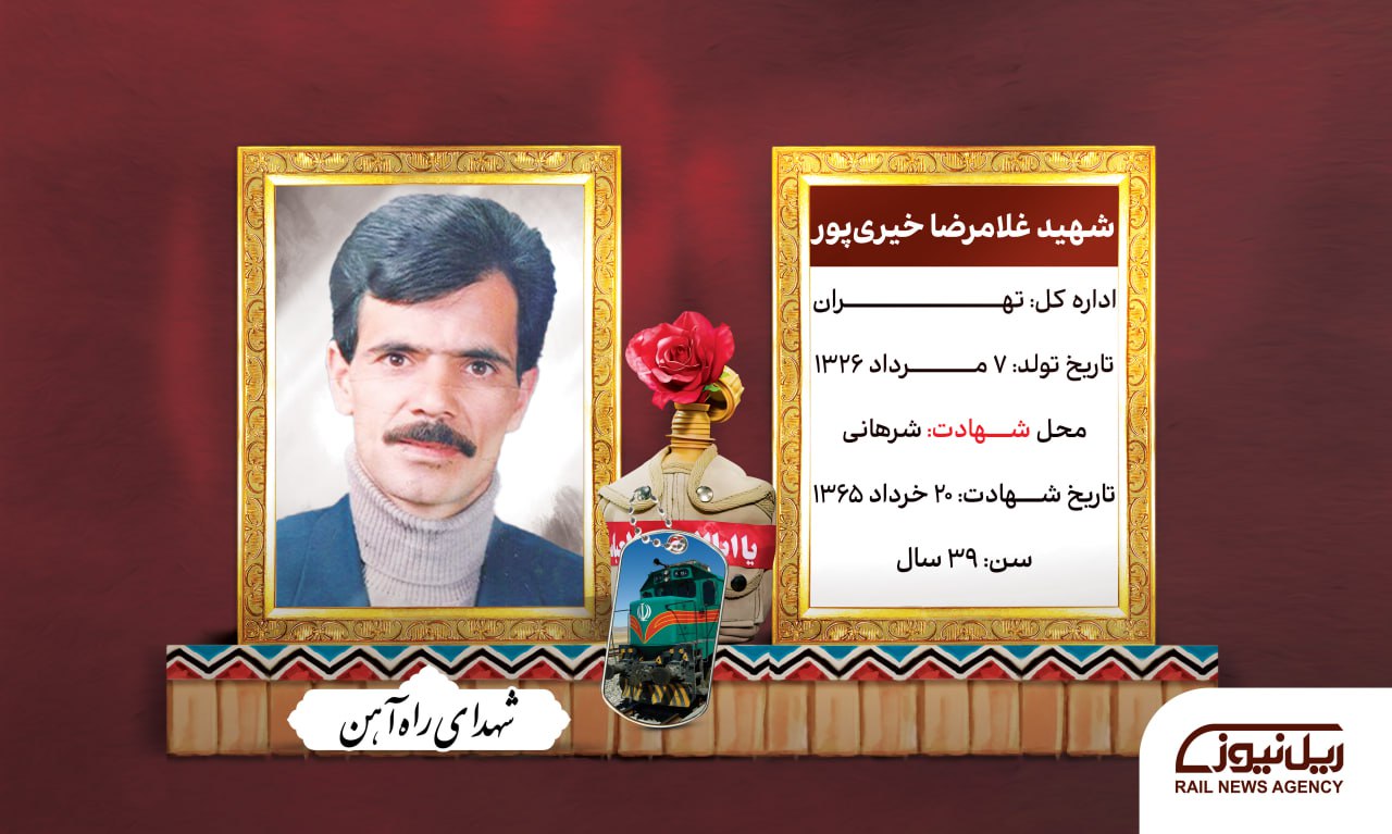 شهید غلامرضا خیری پور از کارکنان راه آهن و لکوموتیوران بود. در جبهه به عنوان آرپیجیزن حضور داشت و بیستم اردیبهشت ۱۳۶۵، در منطقه شرهانی بر اثر اصابت گلوله از سوی نیروهای بعثی شهید شد. این شهید گرامی ابتدا مفقودالاثر بود و پیکرش مدتها در منطقه به جای ماند که پس از تفحص به آغوش خانواده بازگشت و تشییع و خاکسپاری شد. مزار او در بهشت زهرای تهران واقع است.