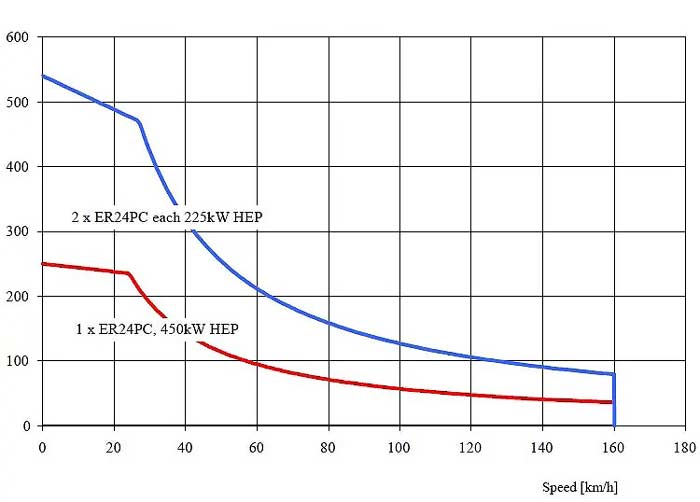 به گزارش پایگاه خبری ریل نیوز به نقل از تین نیوز،عباس قربانعلی بیک در یادداشتی نوشت، سند فنی زیمنس (2009Technical description, )، نتایج شبیه سازی لکوموتیو ER24PC با موتور: MTU16V4000R43L با توان ۲۴۰۰ کیلو وات (در شرایط UIC) در مسیر راهآهن تهران مشهد را با مشخصات و پارامترهای عملیاتی، چنین ارائه می دهد: