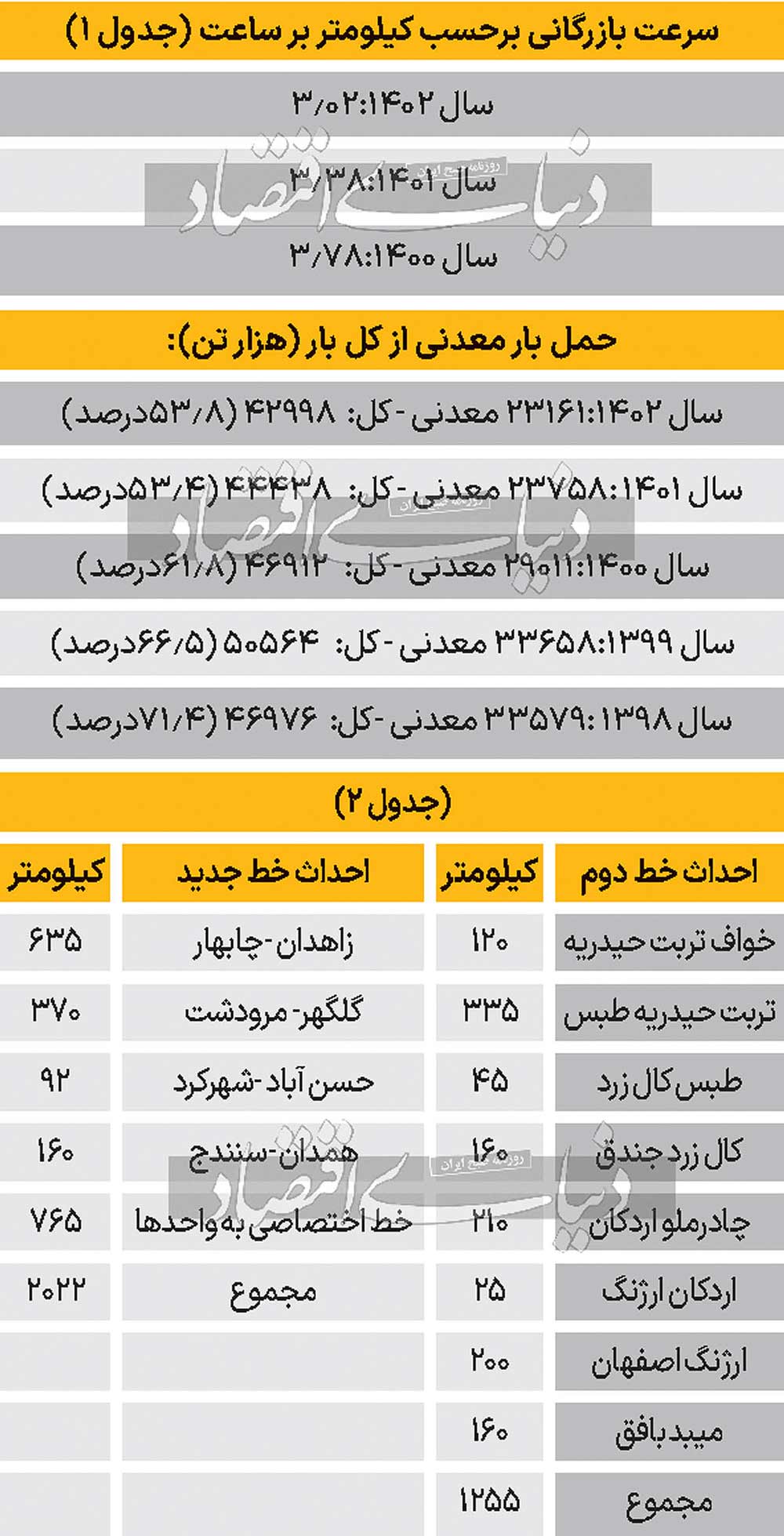 ۳. دوخطه کردن مسیرهای موردنیاز بخش معدن و صنایع معدنی و رفع گلوگاهها