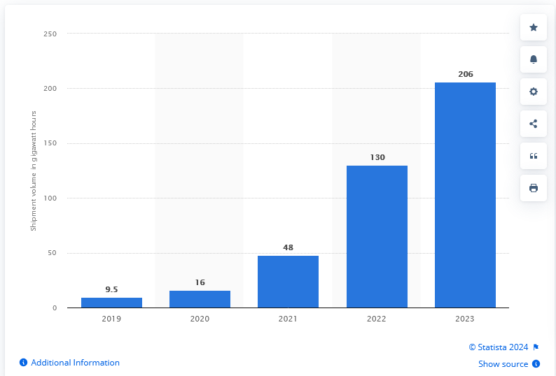 علاوه بر مزایای یاد شده برای حمل باتری های لیتیومی خودروهای برقی با استفاده از قطار، یاید توجه داشت که صنعت ساخت و تجارت این نوع باتری ها با توجه به کاربردهای فراوان آنها در صنایع مختلف، به یکی از پرطرفدار ترین صنایع جهان تبدیل شده که اتفاقا، چینی ها بزرگترین تولید کننده این باتری ها در جهان نیز به حساب می آیند. همانطور که در نمودار زیر ملاحظه می فرمایید، حجم صادرات باتری های لیتیومی چین به خارج از این کشور، از سال ۲۰۱۹ به این سو تا سطح چشمگیری افزایش یافته است.