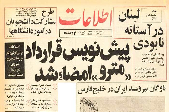 آنچه در ذیل می آید، نگاهی گذرا به برخی مطالب مندرج در روزنامه اطلاعات مورخ ۲ آذرماه ۱۳۵۴ (مربوط به طرح مترو تهران) است که مطالعه آن خالی از لطف نیست.
