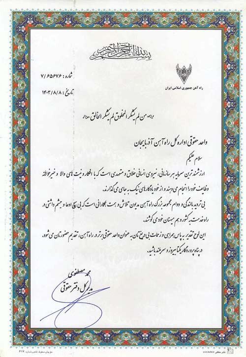 مدیرکل راه آهن منطقه آذربایجان، فعال برتر برگزاری میزهای خدمت جهادی بسیج کارمندان استان آذربایجانشرقی شد.