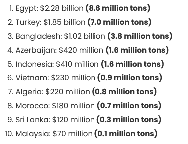 نگاهی به نقشه صاردات روسیه نشان می دهد که کشورهای ذکر شده، به ویژه پس از قطع صادرات گندم اوکراین به شاخ آفریقا، بزرگترین مشتریان گندم و غلات این کشور محسوب می شوند. خبرگزاری دولتی اینترفکس روسیه با انتشار گزارشی در تاریخ ۱۲ نوامبر اعلام کرد که صادرات گندم روسیه به ۱۲ کشور طی ۹ ماه نخست سال ۲۰۲۴ ادامه داشته است. این خبرگزاری به نقل از معاونت صادرات وزارت کشاورزی روسیه اعلام کرد که میزان صادرات گندم به اتیوپی حدود ۳۳۵ هزار تن و به جیبوتی حدود ۲۶۳ هزار تن بوده است. این وزارتخانه همچنین تایید کرده است که کشورهای شمال آفریقا، همچنان بزرگترین مشتریان گندم صادراتی این کشور به حساب می آیند. همچنین روسیه به کشورهای جنوب آسیا همچون سریلانکا نیز صادرات چشمگیری داشته و حجم صادرات گندم به سریلانکا طی ۹ ماه نخست امسال، حدود ۳۶۴ هزار تن بوده است. با اینحال باید در نظر داشت که برخی کشورهای آفریقایی به ویژه مصر، بزرگترین مشتری ثابت گندم روسیه به حساب می آیند.