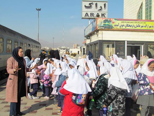 نوای شور وشادی دانش آموزان مدرسه شهید اندرزگو، در ایستگاه مسافری راهآهن اراک، طنین انداز شد.