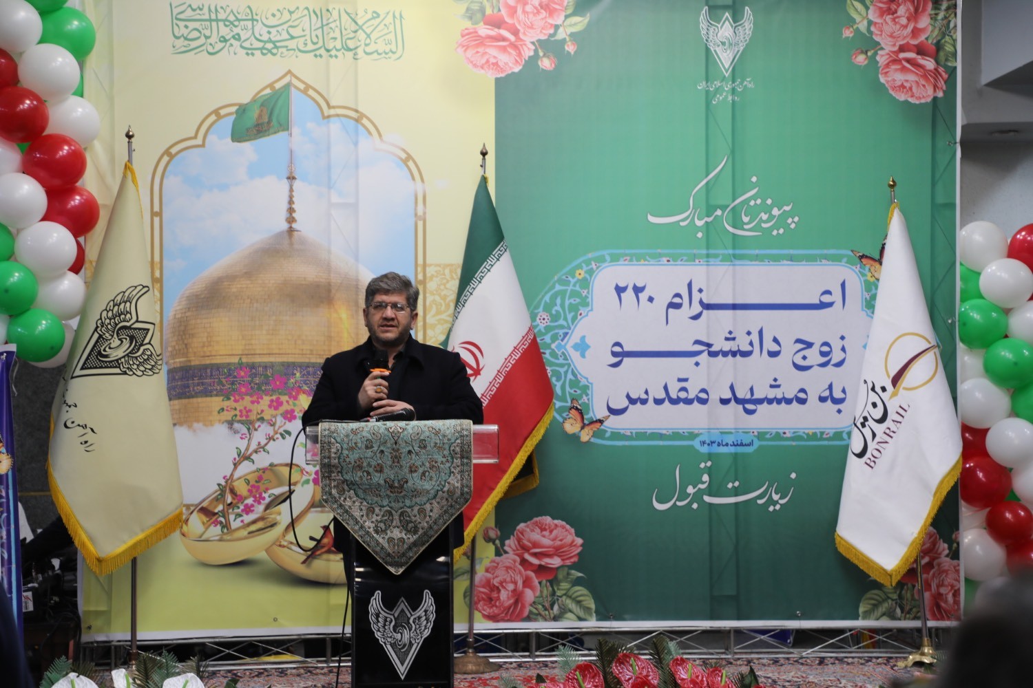 با هماهنگی و مساعدت راه آهن و به همت شرکت راه آهن شرقی بنیاد (بنریل)، ۲۲۰ زوج دانشجو امشب طی مراسم جشنی و با بدرقه رسمی از ایستگاه راه آهن تهران با قطار اختصاصی ساعت ۲۱:۴۵ راهی مشهدالرضا(ع) شدند.