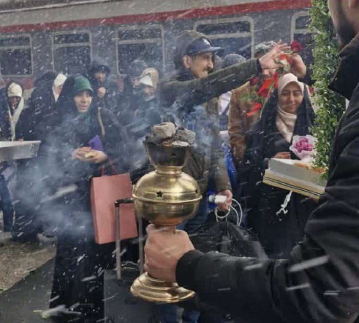 ۲۲۰ زوج دانشجوی تهرانی روز دوشنبه طی مراسمی با بدرقه مدیرعامل و قائم مقام راه آهن و با مشایعت دفتر نمایندگی مقام معظم رهبری در دانشگاه ها به سمت مشهد الرضا (ع) رهسپار شدند و امروز در ایستگاه راه آهن شهید رئیسی مشهد مورد استقبال قرار گرفتند