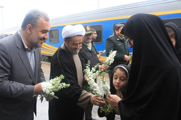 در نخستین روز سال جدید ؛ زائرین و مسافرین اولین قطار ورودی به ایستگاه راهآهن قم با حضور امیرعباس بقایی، فرماندار استان قم، مدیرکل میراث فرهنگی، مجید ارجونی سرپرست اداره کل و خادمان حرم حضرت معصومه (س) مورد استقبال قرار گرفتند.