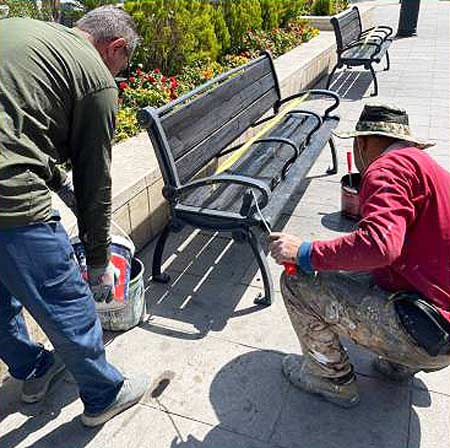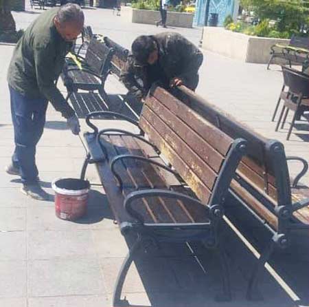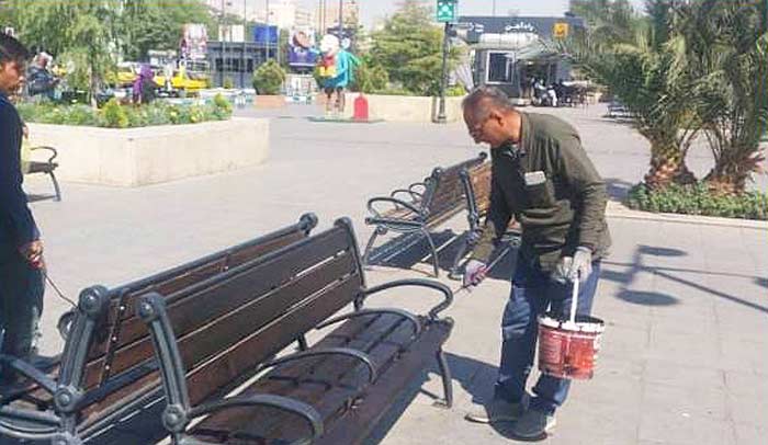 رنگآمیزی و بهسازی مبلمان شهری پیشخوان ایستگاه راهآهن تهران