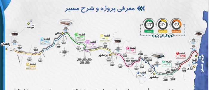 بنابر گفته مجریان پروژه، قطعات آخر پروژه، حدفاصل خاش تا زاهدان به طول ۱۵۵ کیلومتر در سال ۱۴۰۱ به افتتاح و بهرهبرداری رسیده و مابقی خط یعنی حدفاصل چابهار تا خاش نیز که طول آن به بیش از ۴۵۰ کیلومتر میرسد پیشرفت فیزیکی ۷۰ تا ۸۰ درصدی دارد.