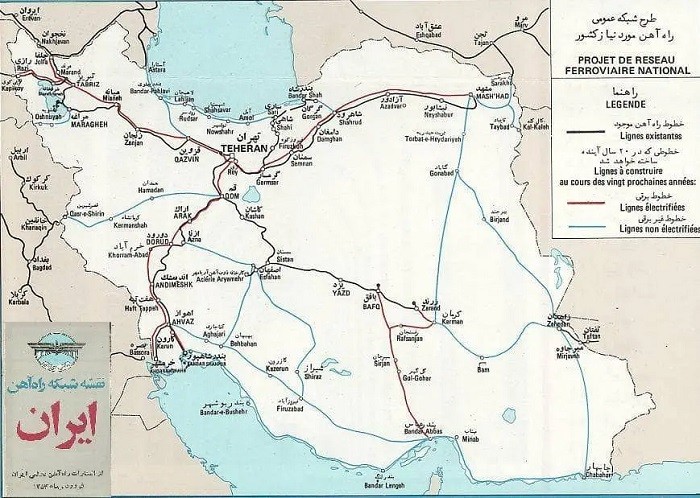 در نقشه شبکه ریلی ایران، علاوه بر خطوط ریلی موجود، خطوط مورد نظر برای ساخت تا ۲۰ سال بعد در دو حالت برقی و غیر برقی نیز در آن مشخص شده بود.