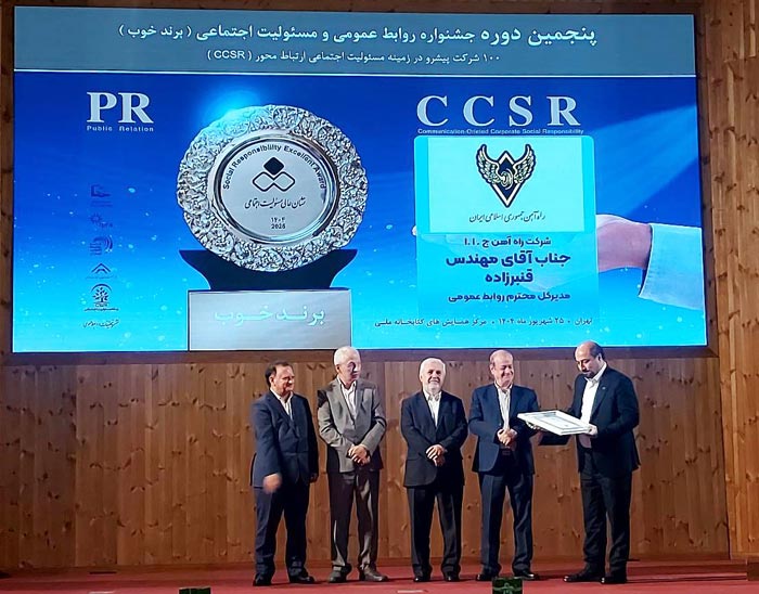 مدیرکل روابط عمومی شرکت راهآهن، در پنجمین جشنواره روابط عمومی و مسئولیت اجتماعی، نشان عالی مسئولیت اجتماعی را دریافت کرد.