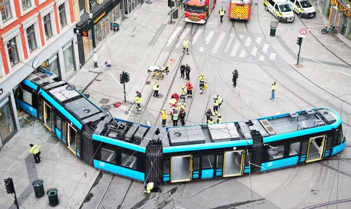 [تماشا کنید] خروج یک تراموا از خط در شهر اسلو پایتخت نروژ