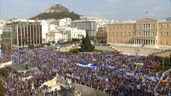 تجمع ده ها هزار نفر از خانواده های جانباختگان تصادف قطار یونانی در آتن