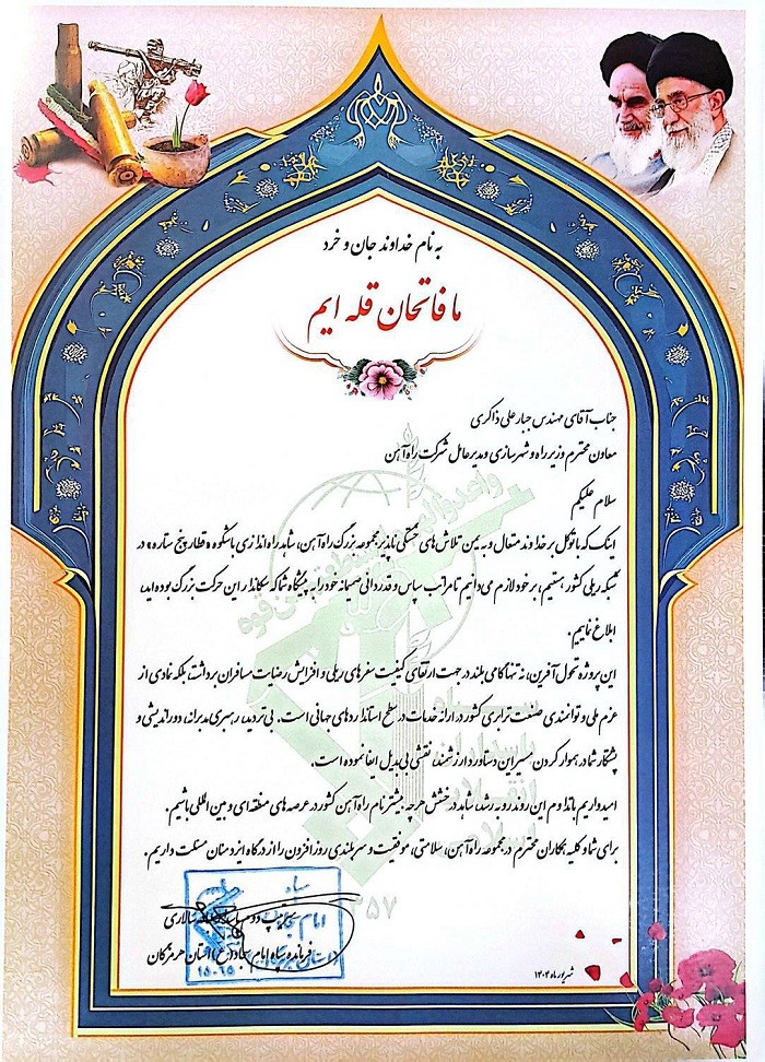 پیام معاون وزیر راه و شهرسازی و مدیرعامل راهآهن به مناسبت مقاومت تاریخی مردم اندیمشک در بمباران ۴ آذر ۱۳۶۵