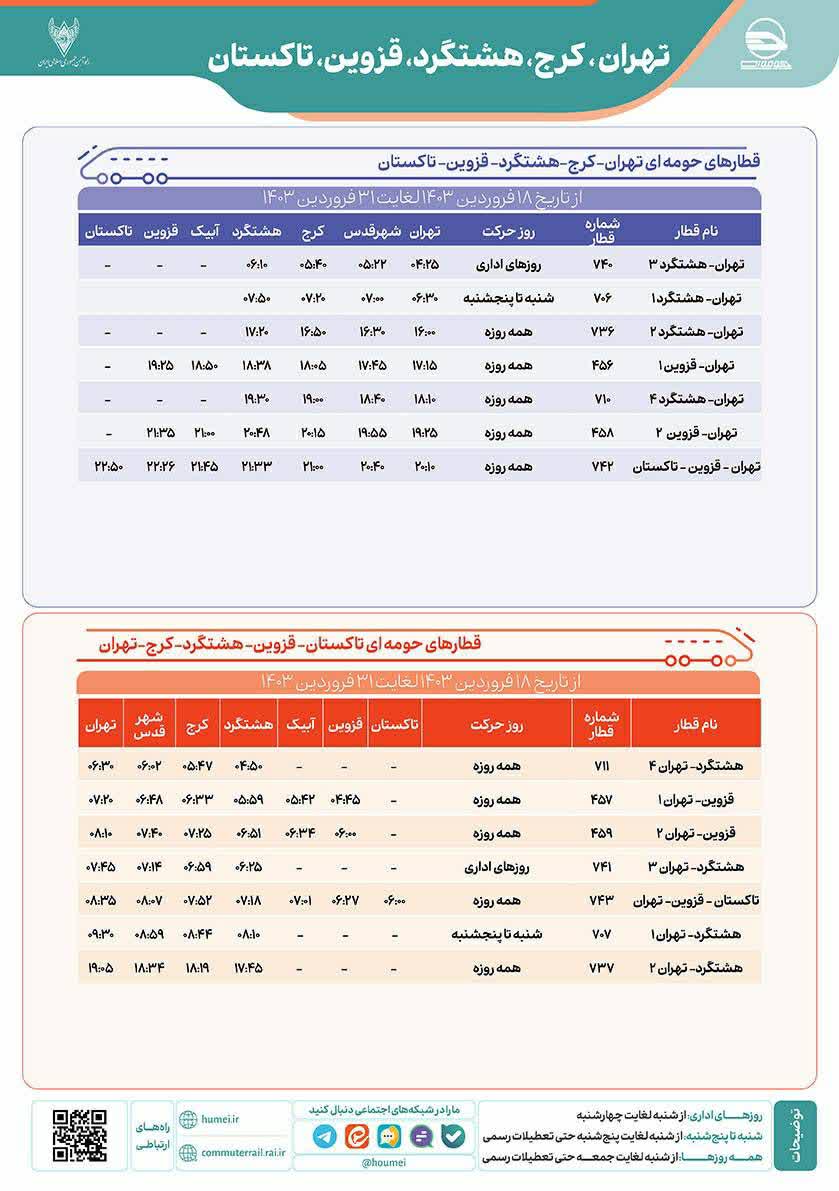 برنامه قطار حومهای تهران – هشتگرد – قزوین